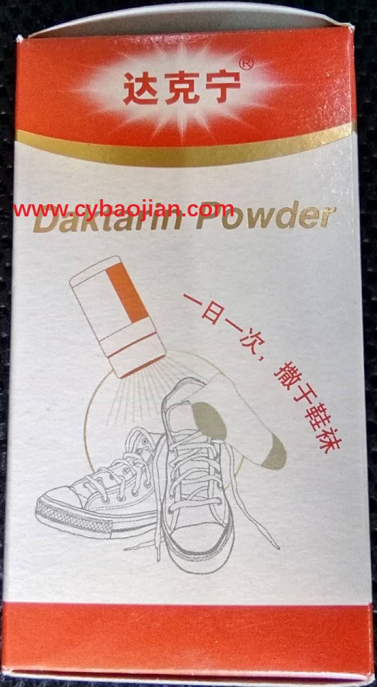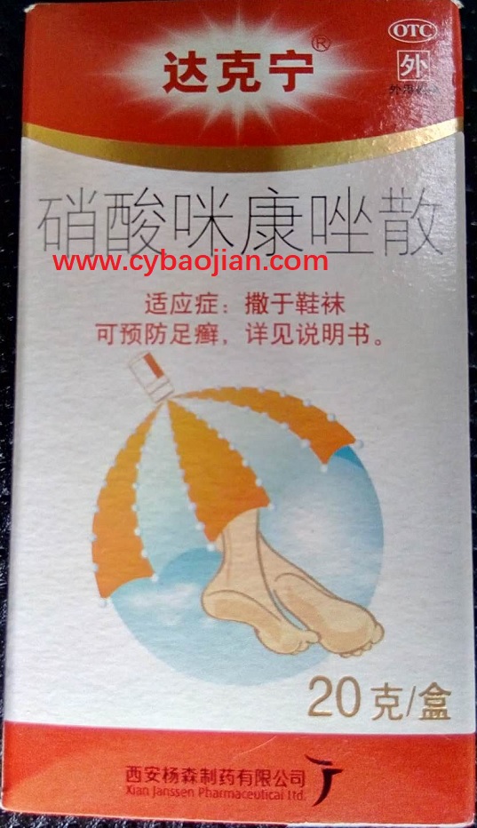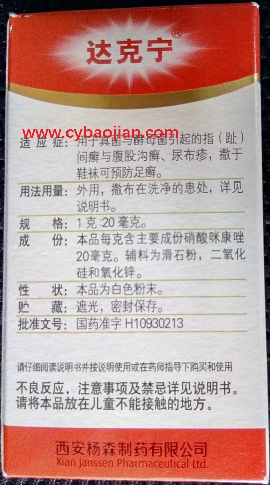 English: Dakenin ingredients of miconazole nitrate powder: the product contains 20 mg of miconazole nitrate per gram, and the excipients are talcum powder, silicon dioxide and zinc oxide; properties: white powder; indications: tinea interphalangea and tinea groin caused by fungi and yeasts, diaper rash, spreading on shoes and socks can prevent tinea pedis;Tel: 13077751355 (Wechat same)/Distribution: Guinan Pharmacy, Gonghe Road 9, Nanning, Guangxi/Contact: Miss Chen
