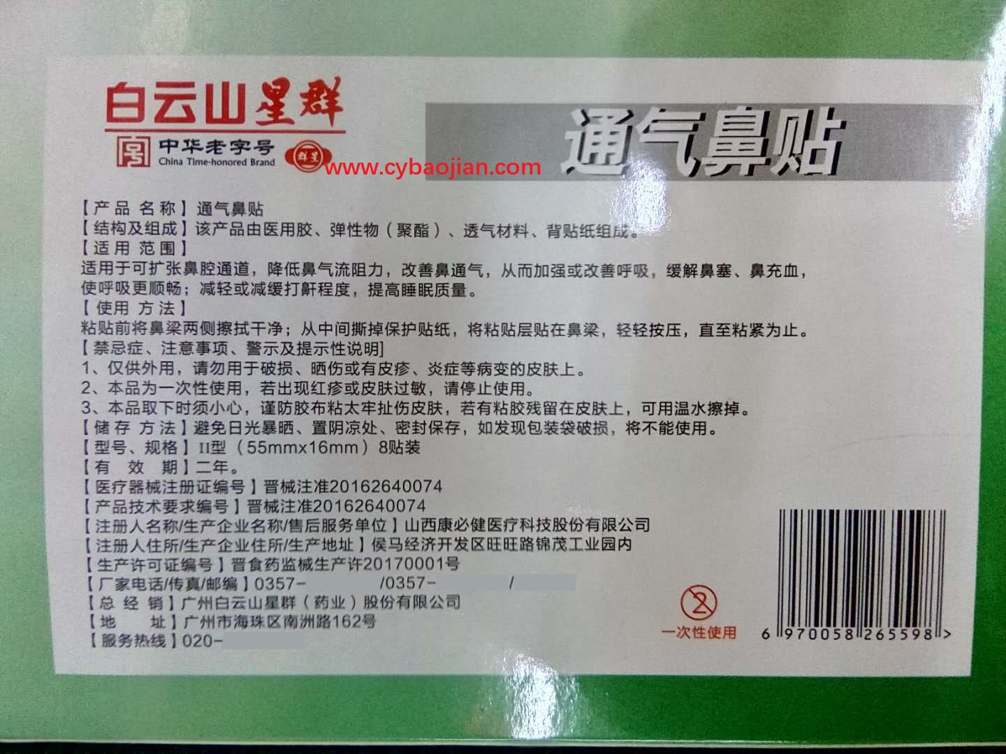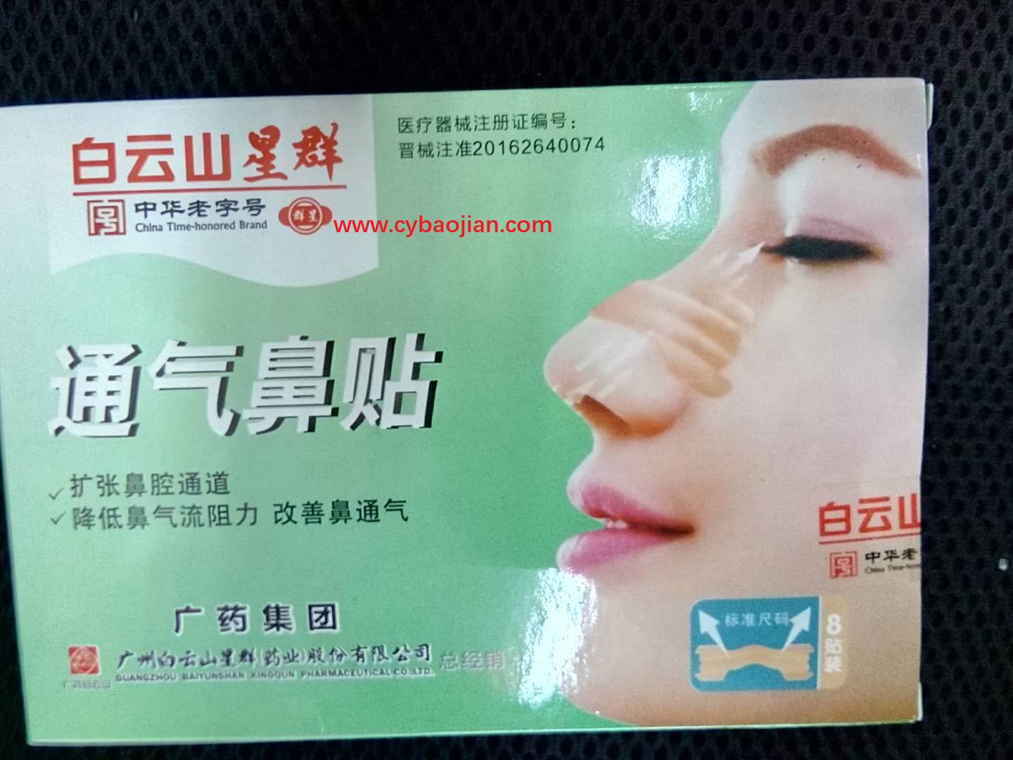 English: The BaiYunSan Xinqun nasal mask consists of medical adhesive, elastic (polyester), breathable material and back sticker. It can be used to expand nasal passage, reduce nasal airflow resistance, improve nasal ventilation, so as to strengthen or improve breathing, relieve nasal congestion and nasal congestion, and make breathing more smooth; reduce or slow down snoring degree and improve sleep quality.Tel: 13077751355 (Wechat same)/Distribution: Guinan Pharmacy, Gonghe Road 9, Nanning, Guangxi/Contact: Miss Chen